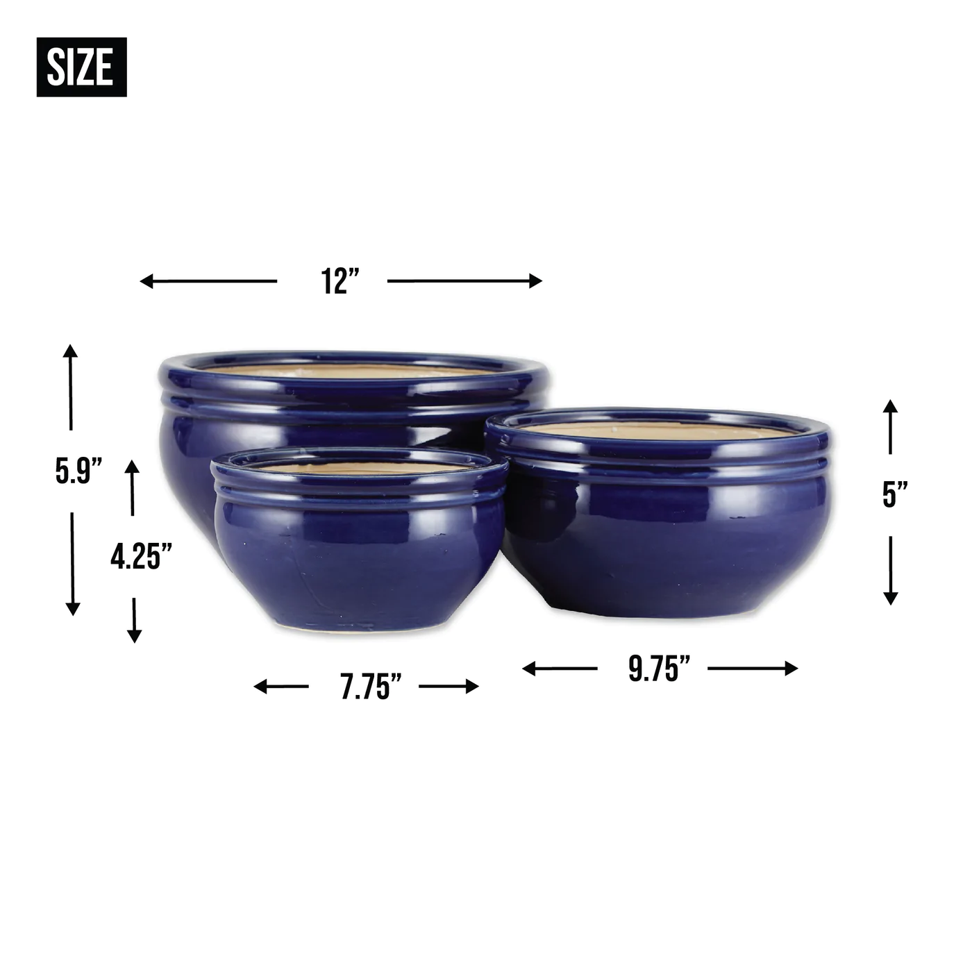 • Enhance your patio or garden greenery with this trio of deep blue planters. Coordinating pots in three separate sizes create an effortless designer look.