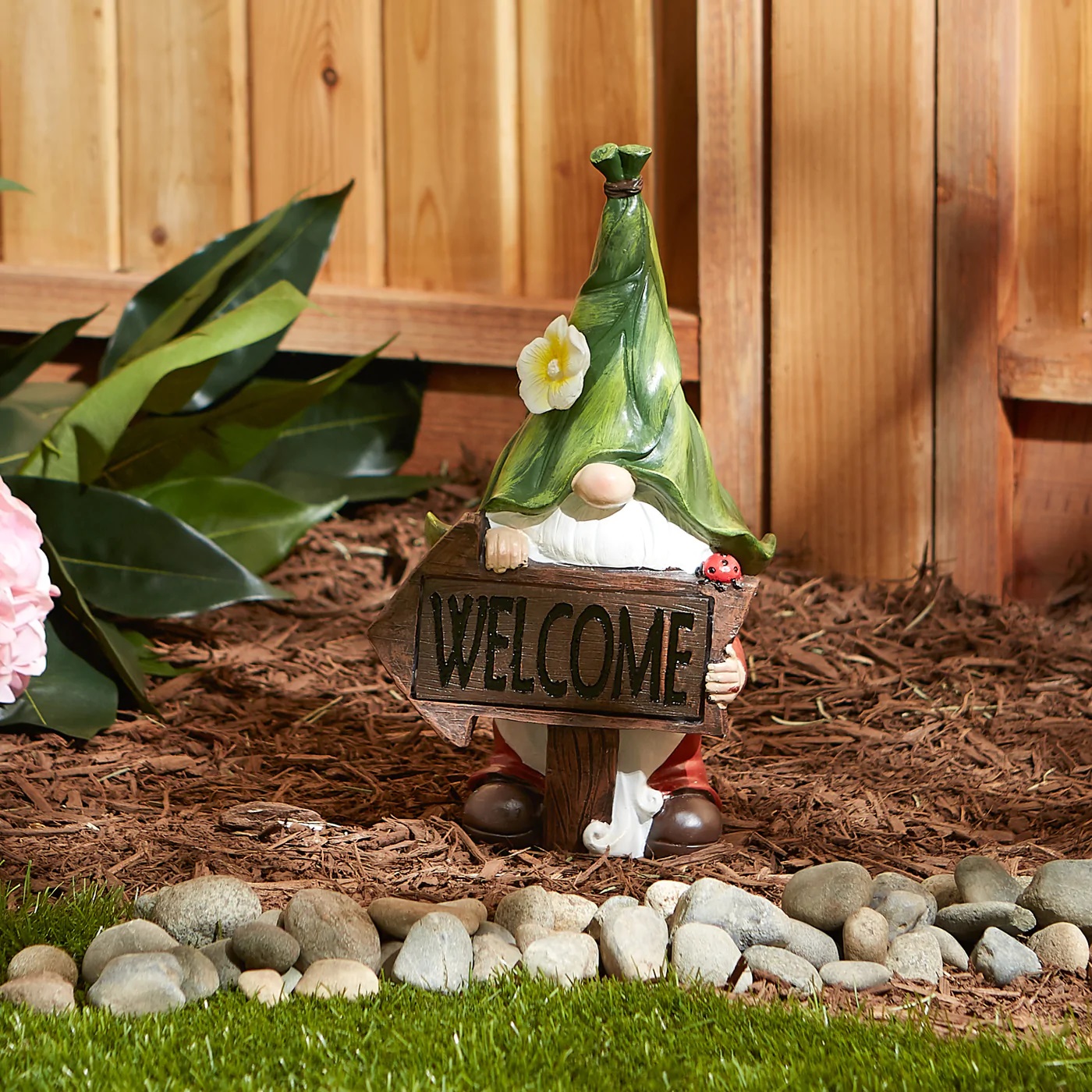Home > GNOME WITH GLOWING WELCOME SIGN SOLAR STATUE
